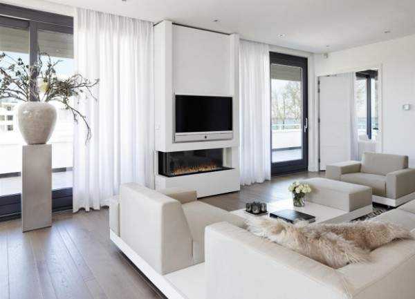 - зал, оформленный в белом и светлых тонах, выглядит более просторным, но в интерьере должны присутствовать яркие детали;