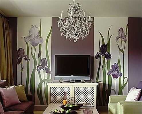 Конечно, далеко не всем по душе яркие цвета. В таком случае можно использовать в зале лишь несколько ярких картинок для акцентуации, а стены оклеить полотнами спокойных тонов.