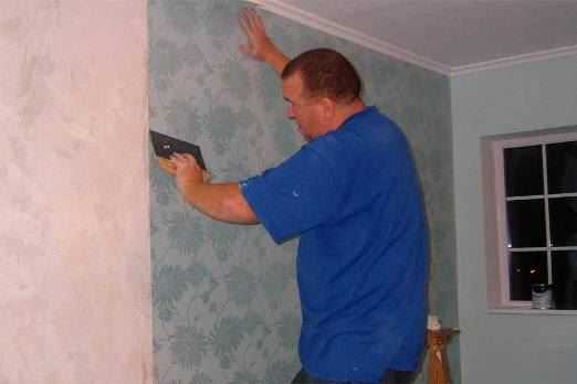 - В первую очередь со стен удаляется старое покрытие – краска, обои, побелка и т.д.