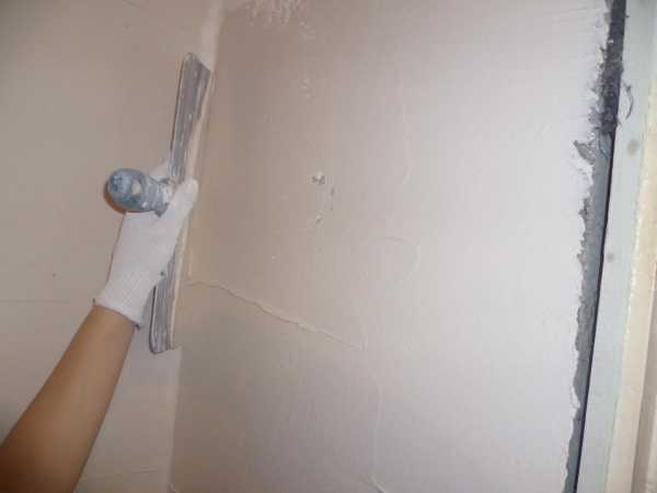 - Далее основание выравнивается при помощи шпатлевки. При этом заделываются все трещины, сколы и прочие изъяны.