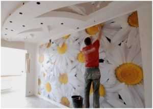 Совет! Возможно, перечень проблем с подготовкой стены, перед тем как поклеить фотообои, вам кажется не по силам, в этом случае можно пойти другим путем и поклеить картинку на штукатурку до начала работы с основными обоями.