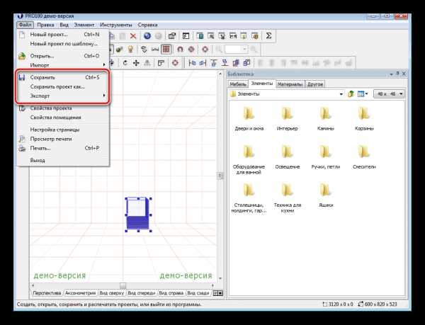 - Сохраните проект, если в дальнейшем нужно будет доработать его или изменить некоторые детали. Нажмите на соответствующую кнопку и выберите подходящее место на ПК.