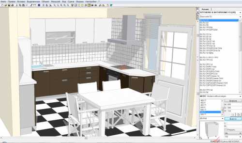 - Sketchup—лучшая и достаточно простая программа от всемирной корпорации Гугл. Она позволяет создавать любые проекты интерьеров, загружать имеющиеся модули, но при этом следует учитывать, что точность в расстановке будет приблизительной.