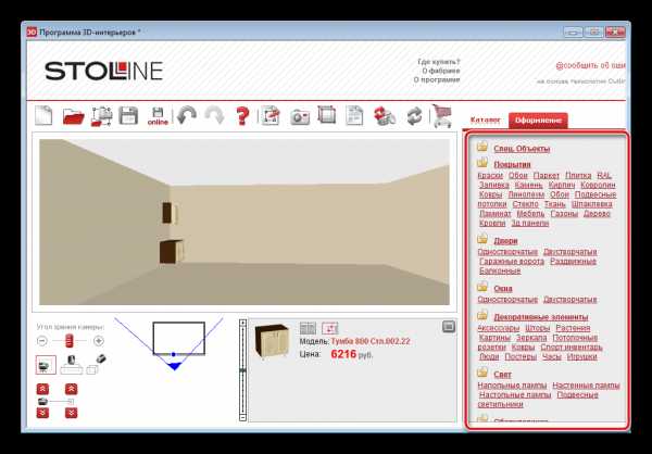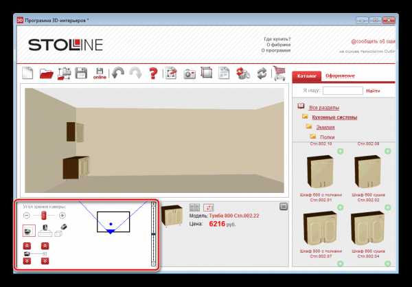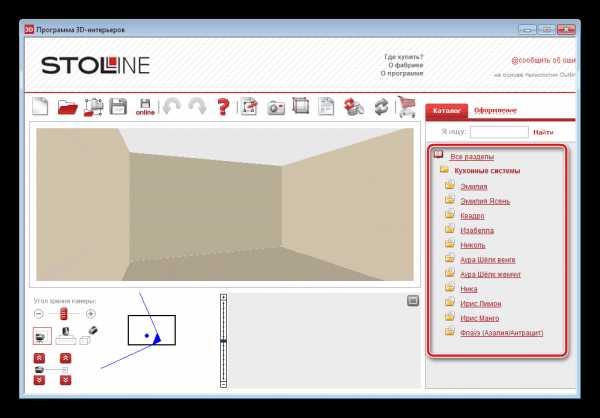 Программа Stolline предназначена для дизайна интерьеров, вмещает в себя большое количество полезных инструментов, функций и библиотек. Она идеально подойдет для того чтобы спроектировать собственную кухню. Сделать это можно следующим образом: