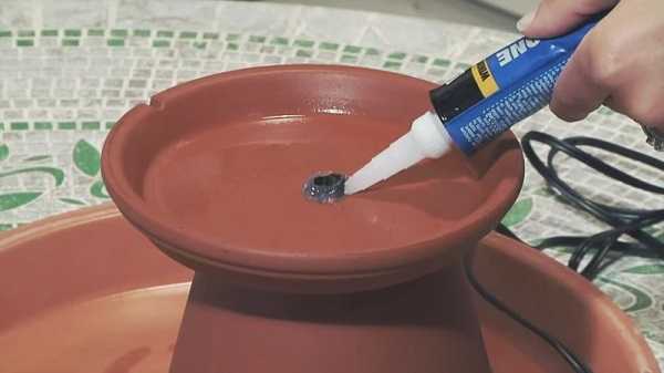 - Проверить работу водопада. Чтобы вода струилась красиво, формируют гнезда для накапливания и красивого падения водяных струек. При помощи пистолета (горячего клея) делаются наверху водопада небольшие углубления в виде желоба.