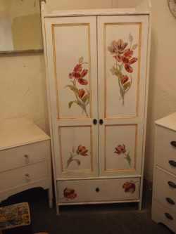 Декор шкафа красками – один из самых несложных. Даже просто окрашенный в один цвет шкаф уже смотрится совершенно иначе. Лучше всего использовать водоэмульсионную краску или акриловую. Водоэмульсионная выгоднее для использования на больших поверхностях, допустим, для фасада шкафа, а вот акрилом удобнее проделывать «ювелирную» работу.