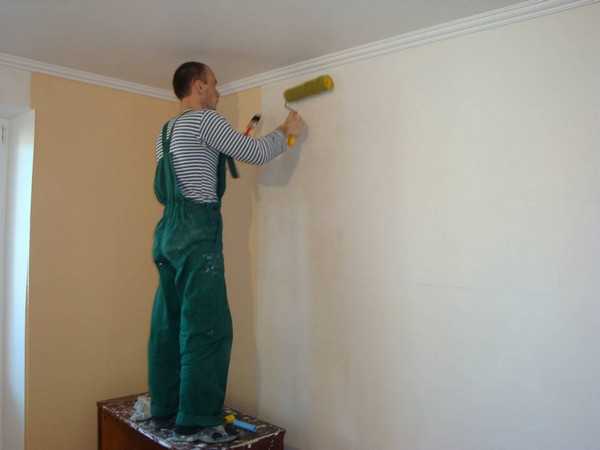 - с помощью валика прокрашивается поверхность сверху вниз;