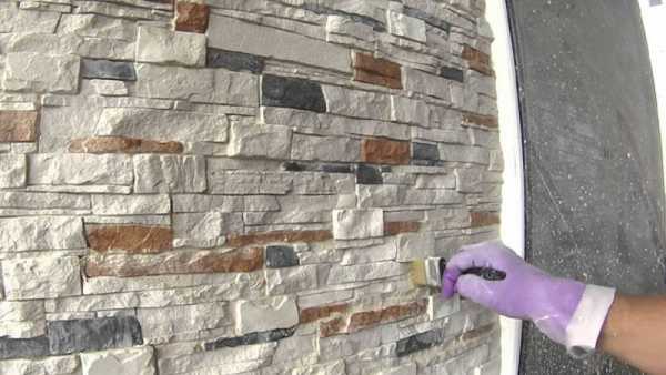 - Защита декоративного камня. В первую очередь это защита краски, то есть внешнего вида. Производится она обычно лаками, наиболее часто используемый материал этого типа – это водорастворимый лак, который применяется для отделки гипсового камня внутри помещений. Для улице можно использовать либо обычный лак, либо лазурь, которая в состоянии придать поверхности камня весьма глубокий вид.