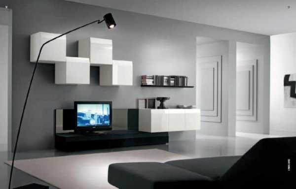 Приевшуюся мебельную стенку с успехом заменят несколько компактных тумб или полок: они не займут много места и при этом будут выглядеть современно.