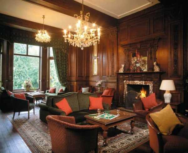 Интерьер отличается своей торжественностью и дороговизной: обитые роскошной тканью диваны, картины в резных рамах, гобелены на стенах. Для зала, оформленного в английском стиле, характерен традиционный камин из дерева темных пород или резного камня, инкрустированный металлом или изразцами.