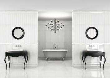 ΠΡΠ²Π΅ΡΠ΅Π½ΠΈΠ΅ Π² ΠΊΠ»Π°ΡΡΠΈΡΠ΅ΡΠΊΠΎΠΌ ΠΈΠ½ΡΠ΅ΡΡΠ΅ΡΠ΅ Π²Π°Π½Π½Ρ ΠΌΠΎΠΆΠ΅Ρ Π±ΡΡΡ Π² Π²ΠΈΠ΄Π΅ ΠΏΠΎΠ΄Π²Π΅ΡΠ½ΡΡ Π»ΡΡΡΡ ΠΈΠ»ΠΈ ΠΆΠ΅ Π²ΡΡΡΠ°ΠΈΠ²Π°Π΅ΠΌΡΡ Π² ΡΡΠ΅Π½Ρ ΡΠ²Π΅ΡΠΈΠ»ΡΠ½ΠΈΠΊΠΎΠ², ΠΈΠ½Π°ΡΠ΅ Π³ΠΎΠ²ΠΎΡΡ, Π²Π°ΡΠΈΠ°Π½ΡΡ ΠΏΡΠ΅Π΄ΠΏΠΎΠ»Π°Π³Π°ΡΡΡΡ Π½Π°ΡΡΠ΅Π½Π½ΡΠ΅ ΠΈΠ»ΠΈ ΠΏΠΎΡΠΎΠ»ΠΎΡΠ½ΡΠ΅. Π‘Π²Π΅ΡΠΈΠ»ΡΠ½ΠΈΠΊ Π² Π²Π°Π½Π½ΡΡ Π½Π° ΠΏΠΎΡΠΎΠ»ΠΎΠΊ ΠΌΠΎΠΆΠ΅Ρ Π±ΡΡΡ Π² Π΅Π΄ΠΈΠ½ΠΈΡΠ½ΠΎΠΌ Π²Π°ΡΠΈΠ°Π½ΡΠ΅ ΠΈ ΠΈΡΠΏΠΎΠ»ΡΠ·ΠΎΠ²Π°ΡΡΡΡ ΠΊΠ°ΠΊ Π±Π°Π·ΠΎΠ²ΠΎΠ΅ ΠΎΡΠ²Π΅ΡΠ΅Π½ΠΈΠ΅, Π° Π² ΠΊΠ°ΡΠ΅ΡΡΠ²Π΅ Π΄ΠΎΠΏΠΎΠ»Π½ΠΈΡΠ΅Π»ΡΠ½ΡΡ ΠΈΡΡΠΎΡΠ½ΠΈΠΊΠΎΠ² ΡΠ²Π΅ΡΠ° ΠΈΡΠΏΠΎΠ»ΡΠ·ΠΎΠ²Π°ΡΡ Π½Π°ΡΡΠ΅Π½Π½ΡΠ΅ ΡΠ»Π΅ΠΌΠ΅Π½ΡΡ.