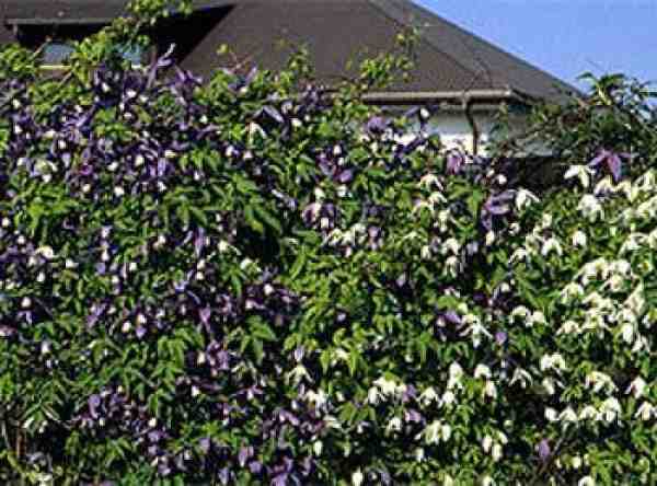Ломонос горный — вьющийся кустарник. Он может вырасти до 12 м в длину, что делает его исключительным для покрытия стен, заборов, беседок и арок. Он может даже перелезть через дерево приличных размеров.