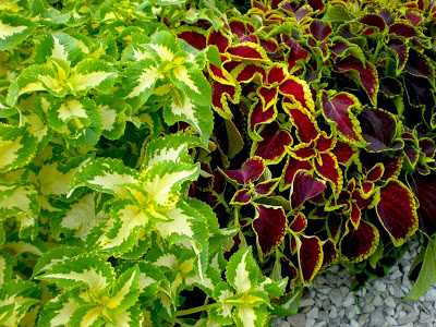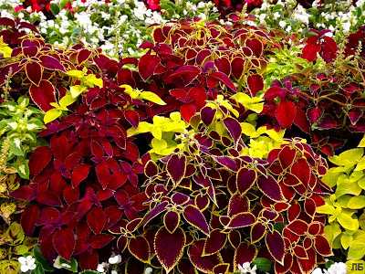 Особенности ухода: Так же, для получения пышных кустов следует периодически прищипывать верхушки.Декоративное применение: Причудливые узоры на листьях колеусов дают возможность использования их в самых различных комбинациях: с однолетними и многолетними цветами в саду на клумбах, в радужных ансамблях из растений в горшках на балконах и террасах, они прекрасны даже в подвесных корзинах. Красивые листья хороши везде.