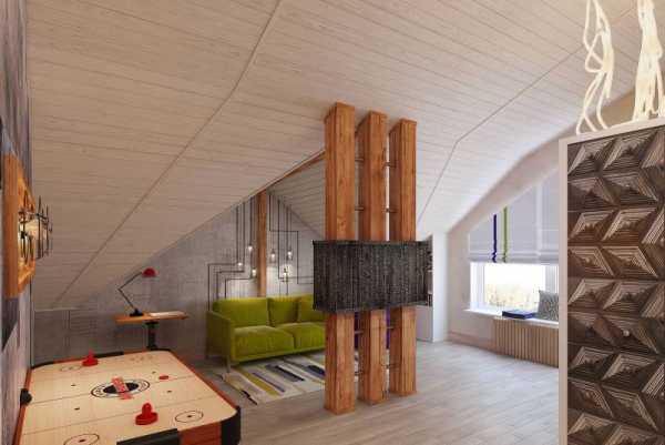 Этажи в мансарде и чердаки стали чаще оформляться в новом стиле. В таком пространстве много света, отсутствуют перегородки. Простор, свет, расположение отдельно от других комнат чаще всего привлекают подростков.