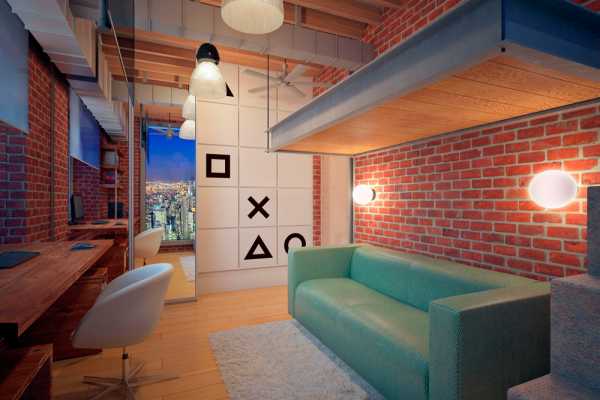 Есть смысл оформить комнату подростков в стиле лофт как улицы ночного города. Варианты – обустройство под голливудские декорации к «блокбастерам» или лабиринты для «стрелялок» и «бродилок» из компьютерных игр. Они будут вам безмерно благодарны! Детский лофт – это бесконечная игра воображения для тех, кто любит урбанизм во всех его проявлениях.