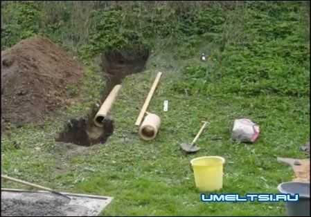 Сначала роют яму примерно 50×50 сантиметров, глубиной от полуметра до метра. Обкладывают углубление кирпичом, внутри будут гореть дрова.Яма соединяется с бочкой дымоходом протяжённостью не менее двух метров. Его можно изготовить из металлической трубы (идеальна чугунная) или вырыть траншею 25×25 сантиметров и обложить кирпичом. Сверху траншея закрывается несгораемым материалом и засыпается грунтом.