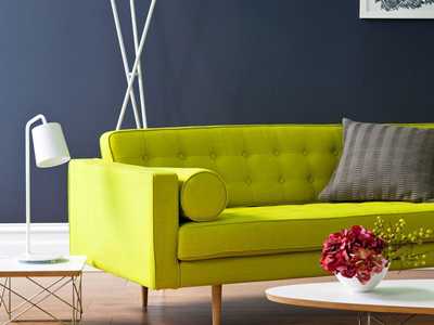 Уникальный и загадочный цвет, зеленовато-желтый выглядит совершенно потрясающе на темном фоне. Диван из зеленовато-желтого твида является стильным посылом, в духе середины прошлого века. Множество чистых, визуально интересных линий в пространстве привносят современный, свежий вид.