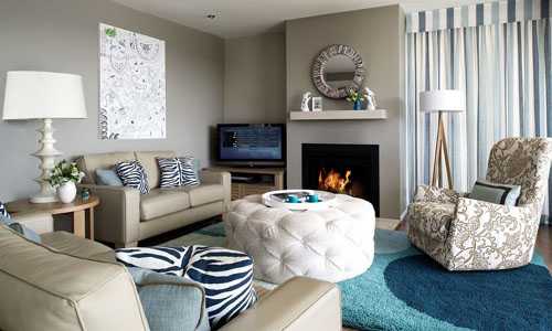 Хорошим приемом их сочетания в интерьере является использование различных тонов этих двух цветов. Темные и светлые тона позволяют сохранить баланс и избежать чрезмерного затемнения помещения. Интересным решением может быть введение в интерьер третьего цвета, например, бежевого или цвета слоновой кости, которые оживят интерьер и придадут ему легкости. Аксессуары в оттенках кремового хорошо сочетаются в интерьерах, оформленных в сером цвете.