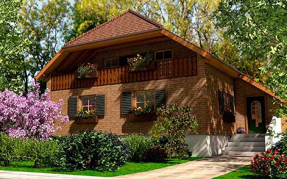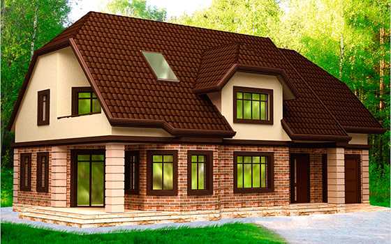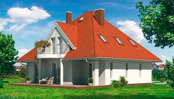 Разновидностью вальмовой крыши является полувальмовая. Это гибрид вальмовой и двускатной конструкций. В верхней части коротких скатов расположены фронтоны, что позволяет сделать проект дома с полноценными фронтонными окнами. Вальмовая конструкция, безусловно, сложнее в исполнении, чем двускатная. Ее изготовление и монтаж значительно затратный.