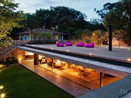 В целом плоская крыша для одноэтажных домов лучше всего подходит в случае, если постройки выполнены в стиле хай-тек или минимализм. Особенно интересными смотрятся огромные одноэтажные особняки где-то за пределами города. Зачастую такие дома приветствуют обильное остекление, чтобы количество естественного света, проникающего в дом, было максимальным.