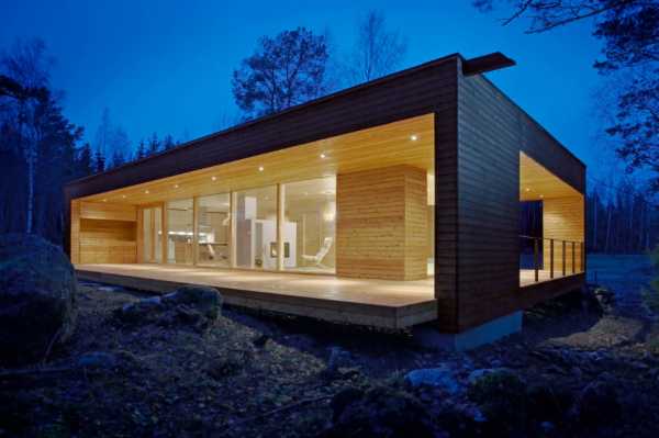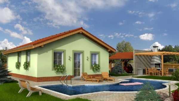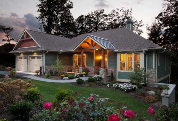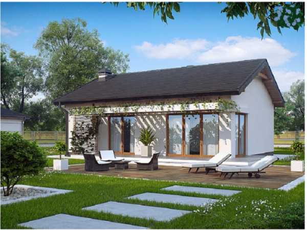 Широкое развитие частного строительства наблюдается на загородных дачных участках. Временное проживание не требует больших жилых площадей, поэтому часто обращаются к проектам одноэтажных домов. Двускатная крыша в этом случае будет оптимальным вариантом. Предлагаем вниманию несколько интересных вариантов уютных строений. Двигаться будем в направлении от более просторных помещений к компактным частным одноэтажным домам.
