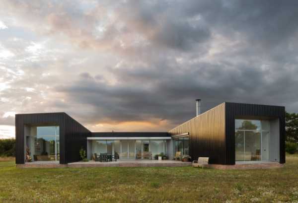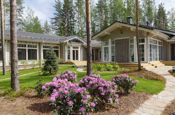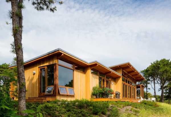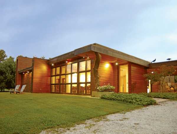 Одноэтажный дом с двускатной крышей очень практичен, выглядит уютно и органично, несмотря на простоту и архитектурную непритязательность.