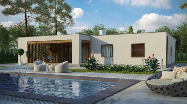 Если взять во внимание все крыши, то их можно поделить на две основные категории: скатные и плоские. В случае с плоским типом крыш все и так понятно, ведь никаких особенностей здесь нет. Следует отметить, что одноэтажные дома с плоской крышей выглядят очень скучно и неприглядно, поэтому ее использование не рекомендуется. Единственные вариант, когда плоская крыша лучше – создание дополнительного пространства для оборудования бассейна на крыше дома.