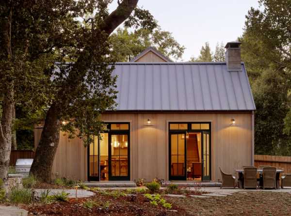 Самая распространённая для одноэтажных построек кровля — это, конечно, щипцовая или двухскатная. В советское время такими было застроено больше 50% частного сектора, да и сегодня этот проект в фаворе не только среди дачного, но и коттеджного строительства.
