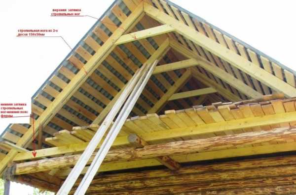 - Кобылки – дополнительный элемент двускатной крыши помогает закрепить свес при условии коротких стропильных ног. С этой целью применяются доски, сечение которых меньше размеров бруса, использованного для монтажа ног.