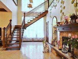 - Классический интерьер любит использование дорогих и натуральных материалов, в случае с лестницей это может быть натуральное дерево с умопомрачительно красивой резьбой или шикарной ковойа по металлу.