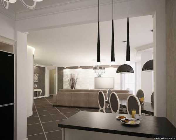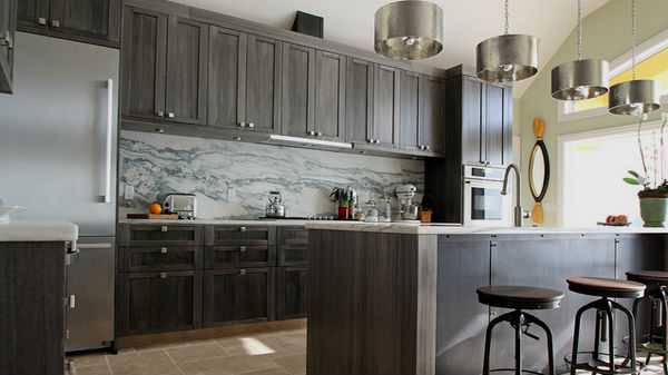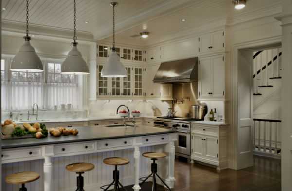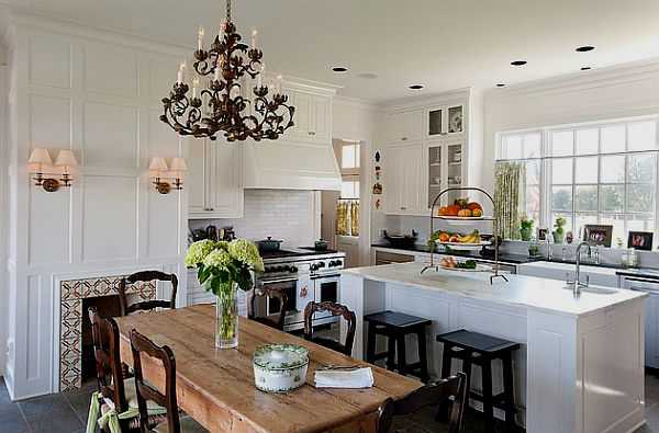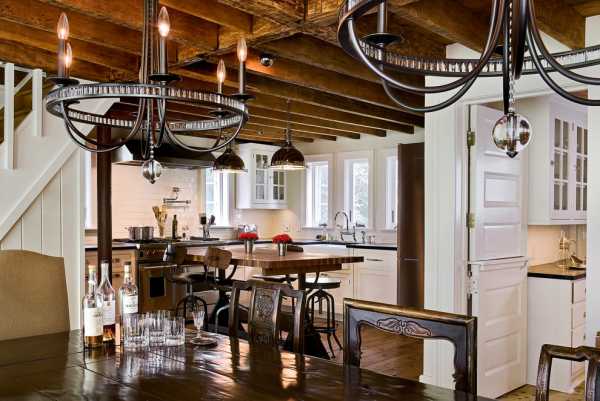 Вот пример того, как в интерьерах кухонь подобного направления смотрятся люстры: