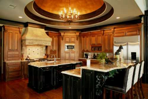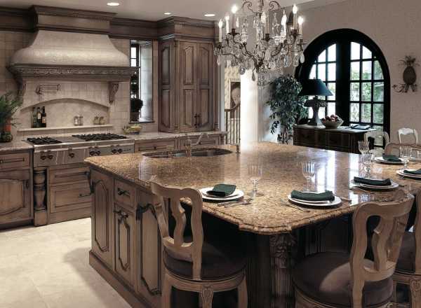 Выбор шикарных, массивных и сложносплетённых моделей люстр в стиле «Классика» гармонично смотрятся на просторных кухнях. Причём это может быть традиционная модель с подвесами и канделябрами или многоярусная композиция из стекла или плетёных сфер или аллюзия на цветочный букет для кухни в стиле «Прованс» – все определяется антуражем.