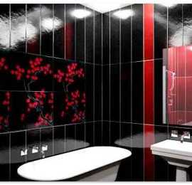 - Украшение различных поверхностей в ванной может быть выполнено в двух вариантах. Первый – это оформление всего интерьера в пастельных оттенках. Второй – с использованием ярких цветов (серый, коричневый, красный, черный).
