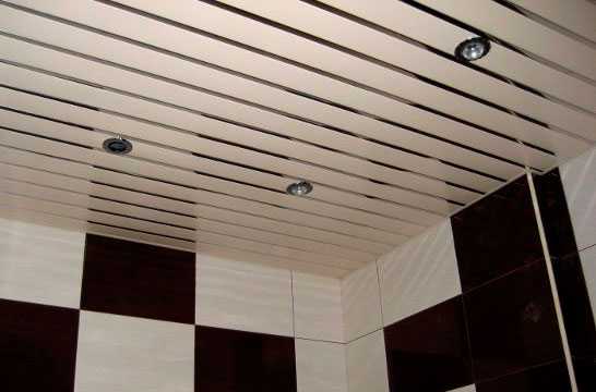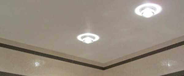 - Самый лучший – натяжной потолок. Во-первых, он укроет весь потолок, «спрячет» выбоины, сколы, неровности. Во-вторых, его достаточно регулярно протирать мягкой тряпочкой – вот и весь уход. В-третьих, о потолке можно надолго забыть. Его «освежать» (и тратить на это деньги) не придется. Так что расходы на монтаж вполне оправданы. В-четвертых, если соседи затопят, то ремонтировать ванную снова не понадобится. Полотно выдерживает до 150 литров воды.