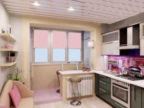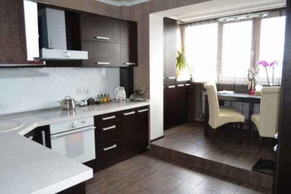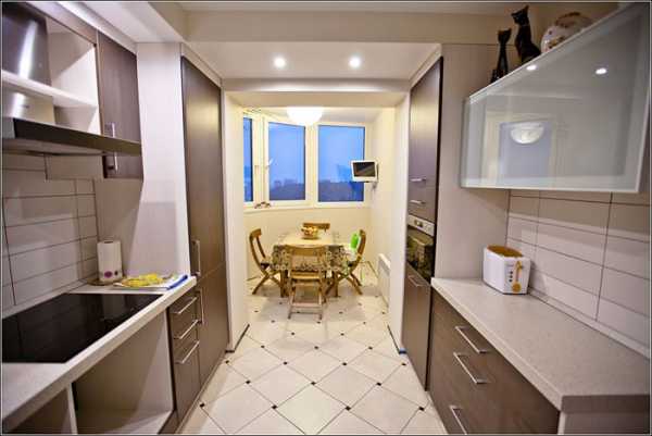 Если с вашей кухни есть выход на балкон (лоджию), неплохим решением может стать объединение кухни с балконом.