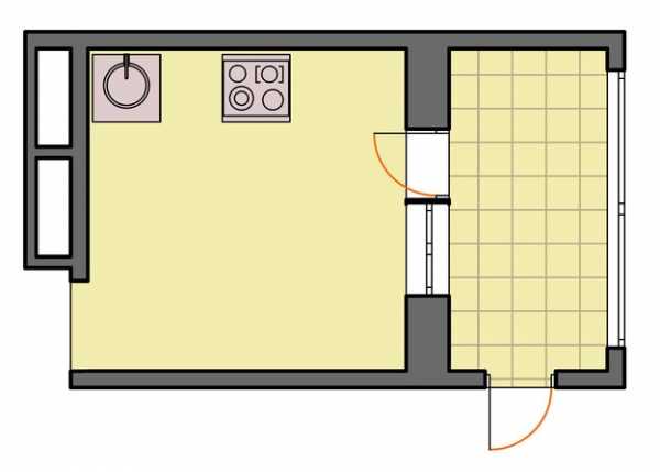 Если имеется вместительная лоджия, то её можно использовать в качестве кухни. Рабочая зона, варочная поверхность и раковина будут находиться в хорошо освещённом и проветриваемом помещении. Наличие вытяжной трубы в этом случае необязательно.