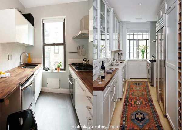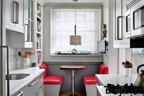 Правильная расстановка мебели на узкой кухне поможет исправить недостатки помещения