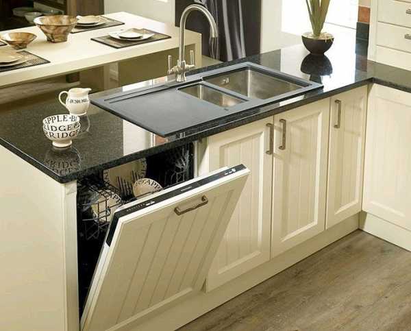 Другая крупная бытовая техника, такая как посудомоечная или стиральная машины, должна быть полновстраиваемая или частично встраиваемая (ставится под столешницу), но ни в коем случае не стоять отдельно, загораживая проход и общее пространство кухни.