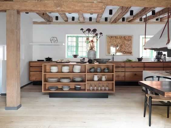 Лаконичная деревянная мебель для кухни в стиле рустик
