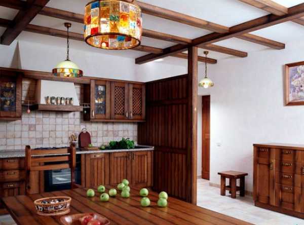 - декор потолочными балками.