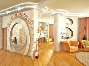 Π‘ΠΎ Π²ΡΠ΅ΠΌΠ΅Π½Π΅ΠΌ, ΡΠ°ΠΊΠΎΠ΅ ΡΠΎΠΎΡΡΠΆΠ΅Π½ΠΈΠ΅ ΡΡΠ°Π»ΠΎ Π²ΡΠΏΠΎΠ»Π½ΡΡΡ Π±ΠΎΠ»ΡΡΠ΅ Π΄Π΅ΠΊΠΎΡΠ°ΡΠΈΠ²Π½ΡΡ ΡΡΠ½ΠΊΡΠΈΡ. ΠΠ½ΠΎ ΡΡΠ°Π»ΠΎ ΠΏΠΎΠΏΡΠ»ΡΡΠ½ΠΎΠΉ ΠΈ Π½Π΅ΠΎΡΡΠ΅ΠΌΠ»Π΅ΠΌΠΎΠΉ ΡΠ°ΡΡΡΡ Π΄ΠΈΠ·Π°ΠΉΠ½Π°. Π‘ Π΅Π³ΠΎ ΠΏΠΎΠΌΠΎΡΡΡ Π² ΠΏΠΎΠΌΠ΅ΡΠ΅Π½ΠΈΠΈ ΠΌΠΎΠΆΠ½ΠΎ ΠΈΠ·Π±Π°Π²ΠΈΡΡΡΡ ΠΎΡ ΠΏΡΡΠΌΡΡ ΡΠ³Π»ΠΎΠ² ΠΊΡΡ Π½ΠΈ, ΠΏΠΎΠ»ΡΡΠΈΡΡ Π»Π΅Π³ΠΊΠΎΡΡΡ, ΠΈΠ·ΡΡΠ΅ΡΡΠ²ΠΎ ΠΈ Π²Π΅Π»ΠΈΡΠΈΠ΅ Π³ΠΎΡΡΠΈΠ½ΠΎΠΉ.