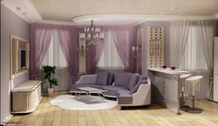 Комната, полученная путем объединения гостиной с кухней, воспринимается как единое целое, но во избежание загромождения и хаоса требует упорядочивания и грамотной расстановки предметов. Совмещение помещений, отличающихся по своему предназначению, требует выделения отдельных функциональных зон, причем разграничение пространства может быть как визуальным, так и фактическим.