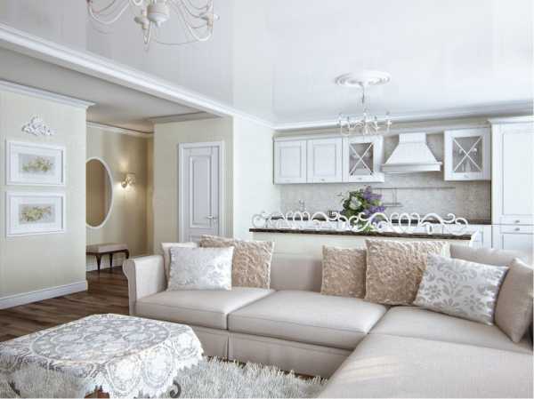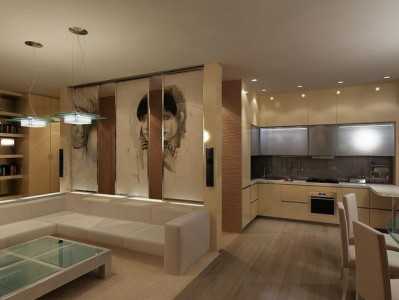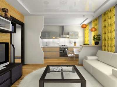 - в квартирах с маленькой кухней, которую можно увеличить за счет большой гостиной, или с маленькой гостиной. Совмещение помещений обеспечит увеличение полезной площади жилища.
