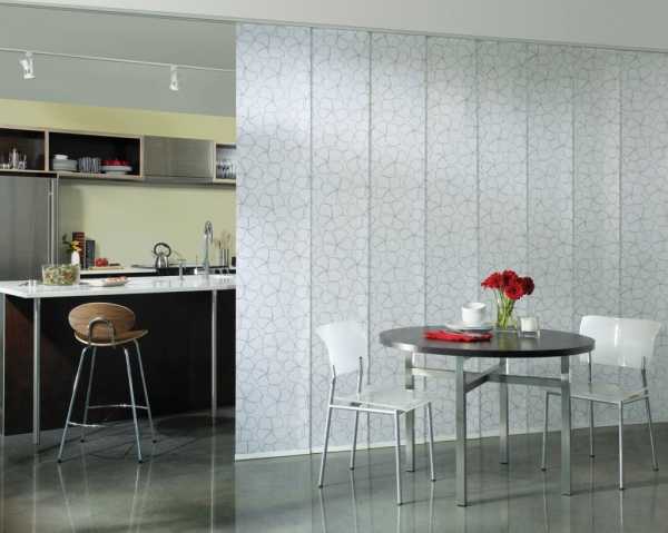 Так называемое конструктивное зонирование предполагает использование передвижных перегородок, складных фальш-стен, ширм или стеллажей. Желательно, чтобы перегородки были легкими, мобильными и полупрозрачными. Наиболее подходящие материалы для их изготовления – пластик, дерево или матовое стекло. Достоинством перегородок является возможность маскировки рабочей зоны кухни, на которой не удается всегда поддерживать идеальный порядок.
