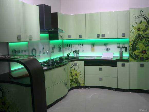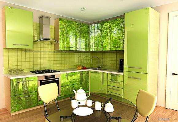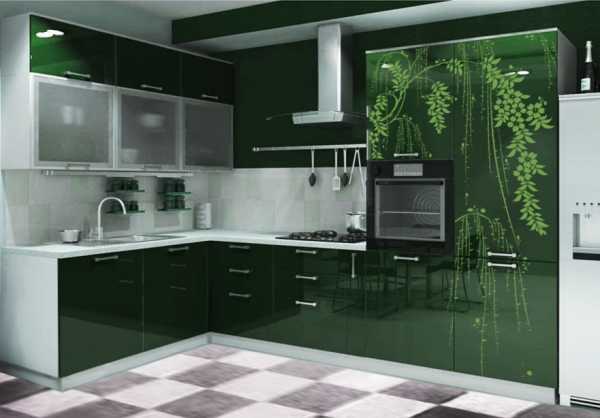 Кухни зеленого цвета с рисунком. Готовые варианты фото.