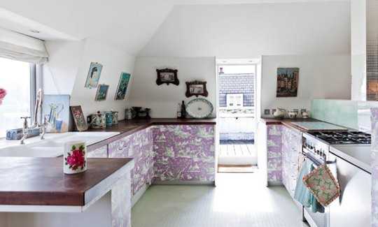 Здесь дизайнер решил украсить не шкафчики, а стену. Фото: http//nevamebel.ru.