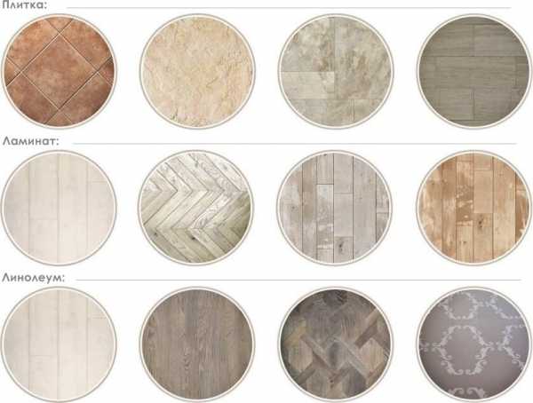 Самым удачным решением для оформления пола является плитка на керамической основе, паркетная доска и ламинат.