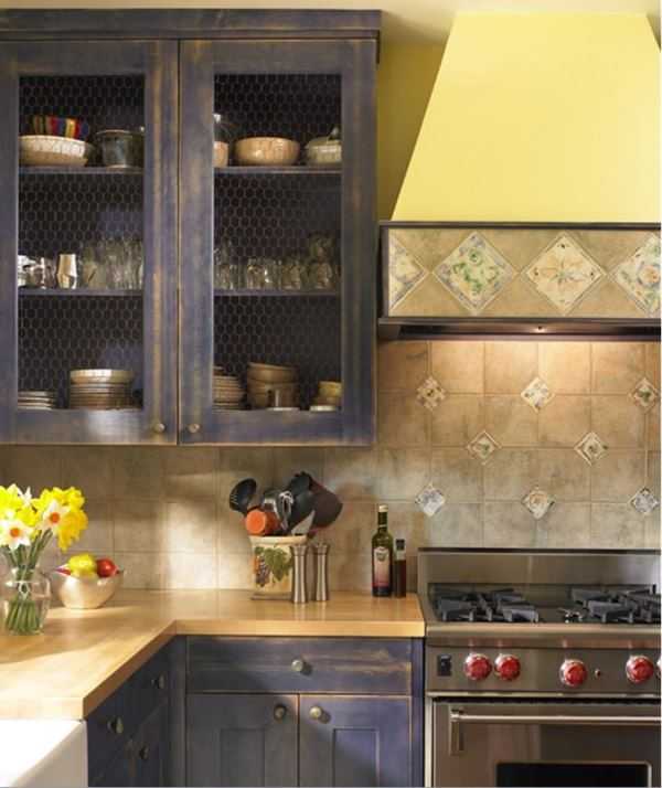 Главное требование, предъявляемое к мебели в интерьере кухни, гласит, что она должна выглядеть состаренной, иметь следы потертостей.Потертости должны быть незначительными и напоминать о том, что меблировка была изготовлена в прошлом столетии.