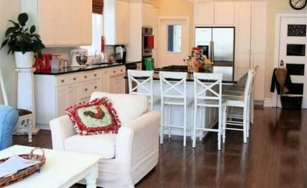 На заметку! Стиль шебби-шик можно задействовать не только в дизайне кухни, но и в других помещениях — к примеру, в гостиной или в спальной комнате.