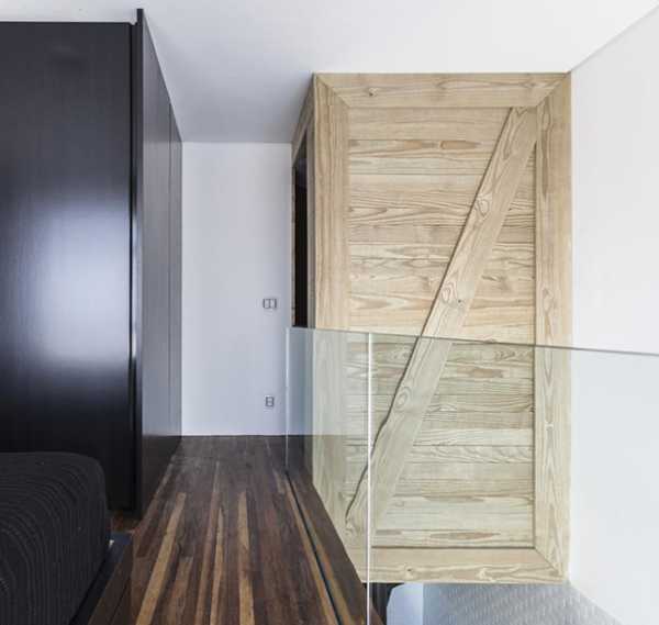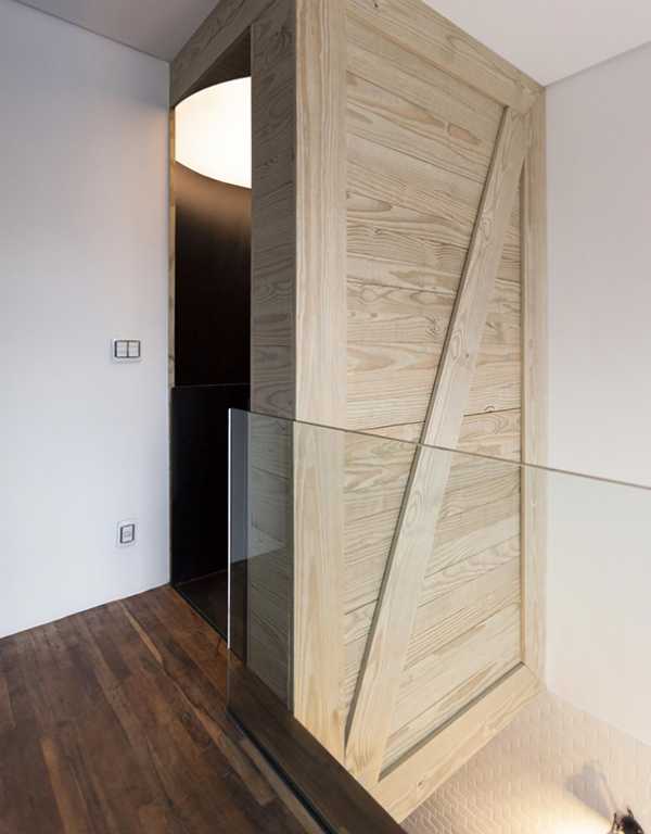 Еще один «ящик» Алан разместил в верхней части лестницы, создав короб, через который попадаешь на второй этаж. По словам самого архитектора, он образует переходную зону от темного конуса лестницы к мезонину.